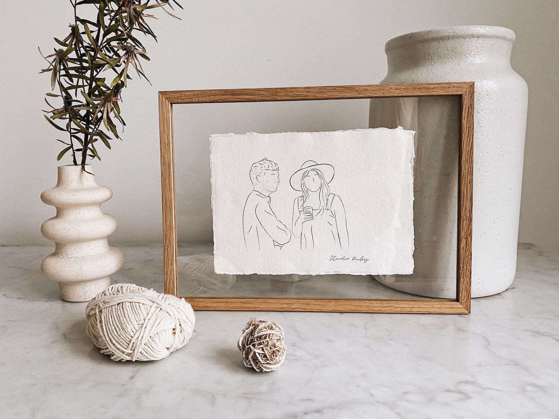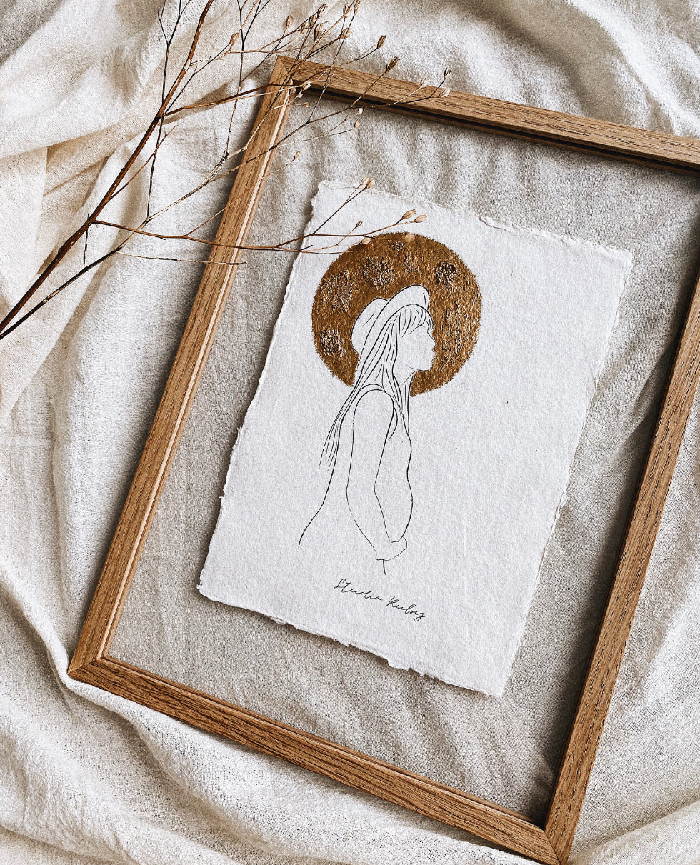 Eikenhouten lijst met dun frame met minimalistische uitstraling om je line-art het mooiste plekje te geven.