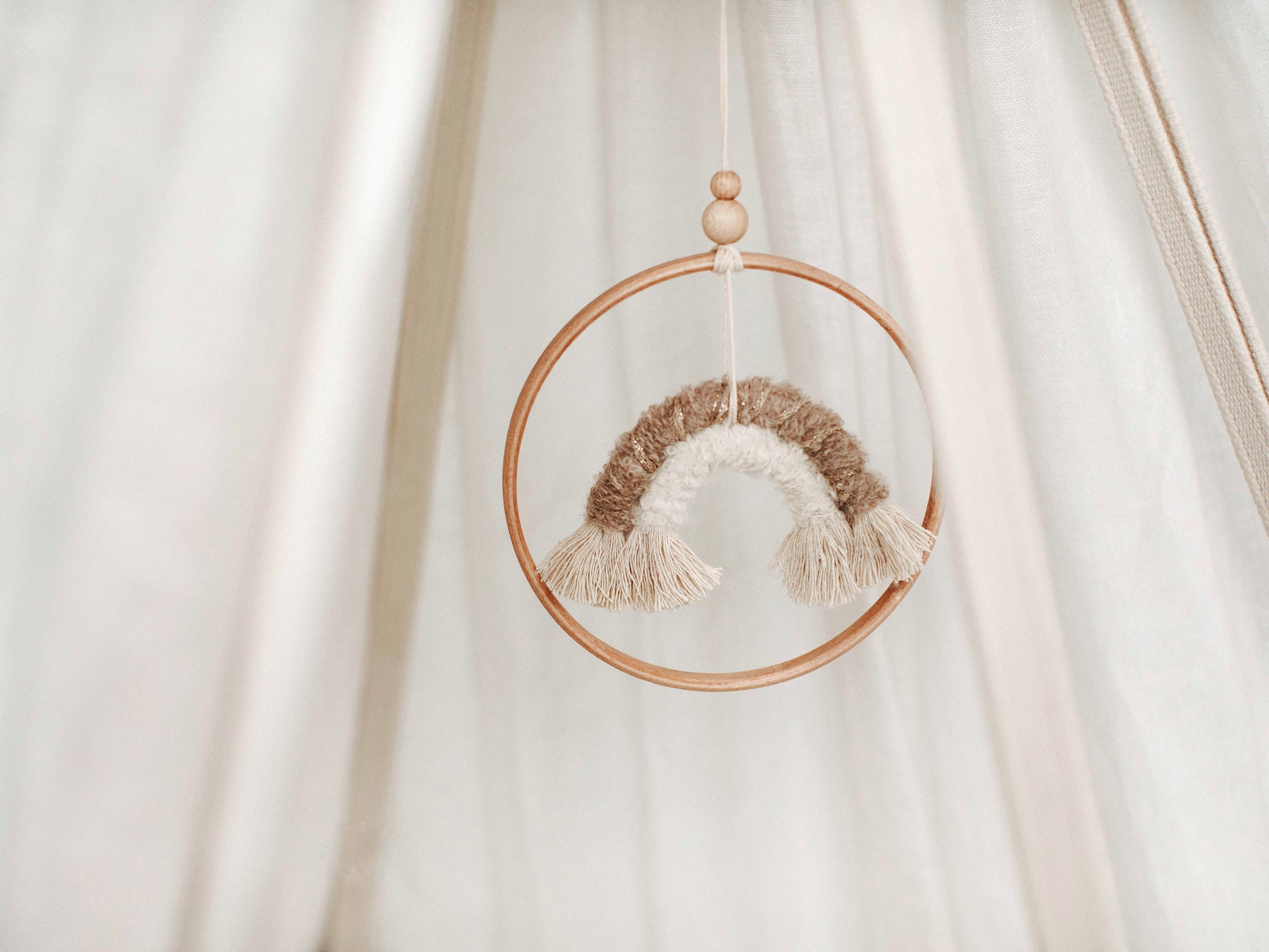 Hier de Single met een 1 houten ring. Mooi voor boven een wiegje of aan een wandplank in de babykamer.