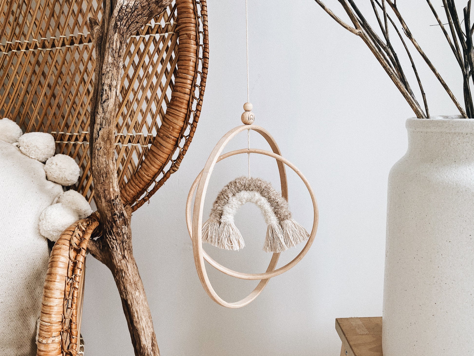 Het draad is extra lang gehouden zodat je deze zelf gemakkelijk kunt aanpassen aan de gewenste hoogte. Of je de Ruby Rainbow nu aan het plafond hangt of aan het wiegje.